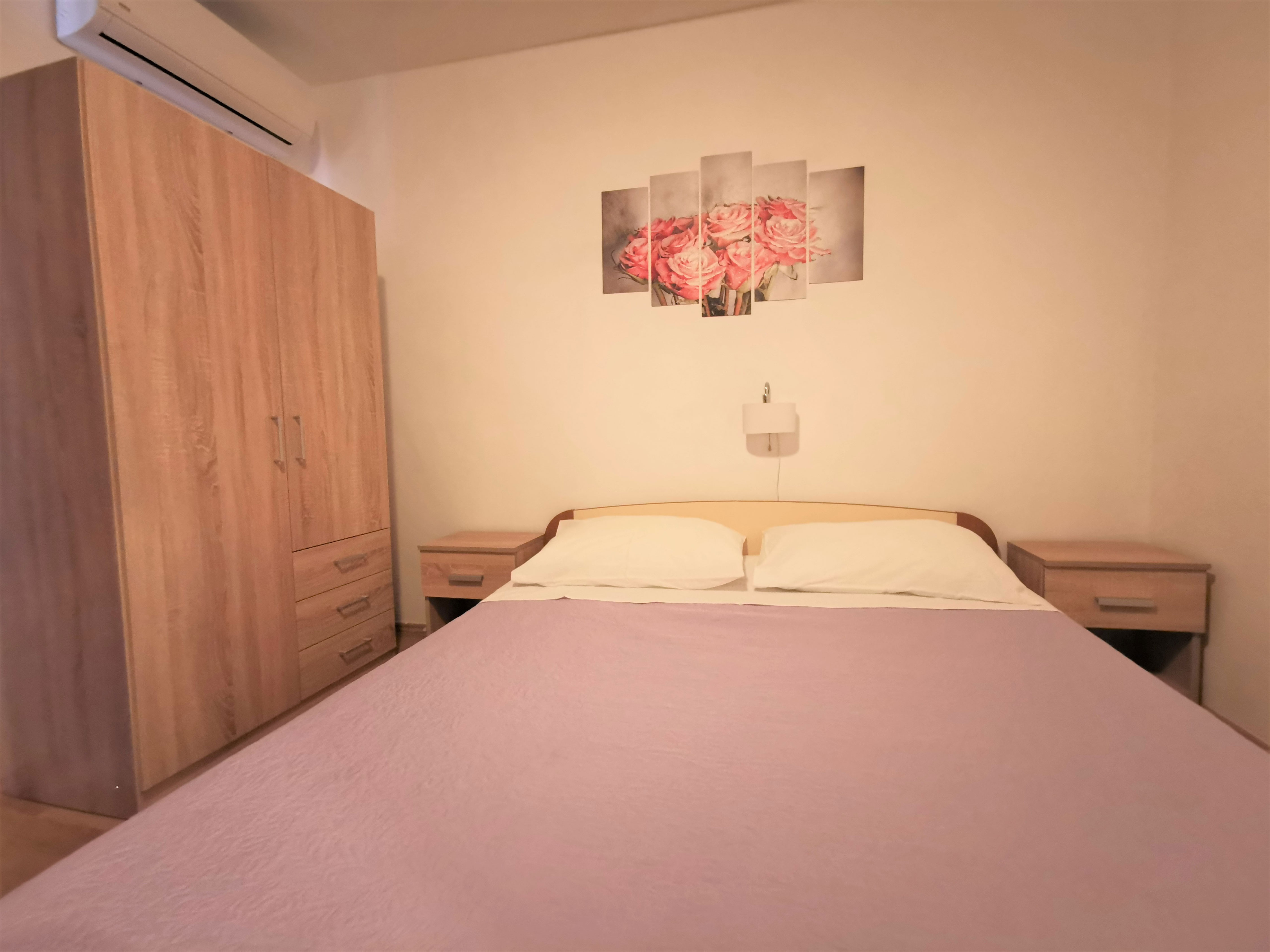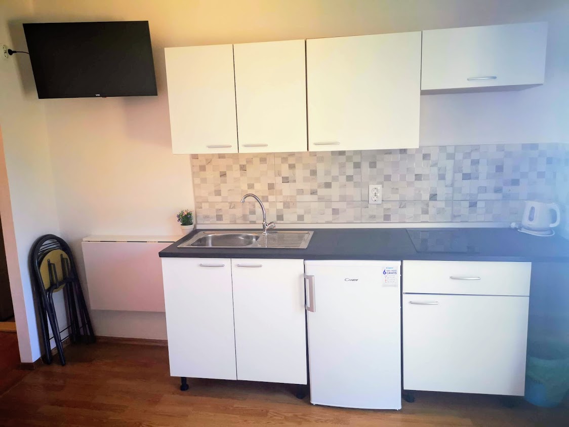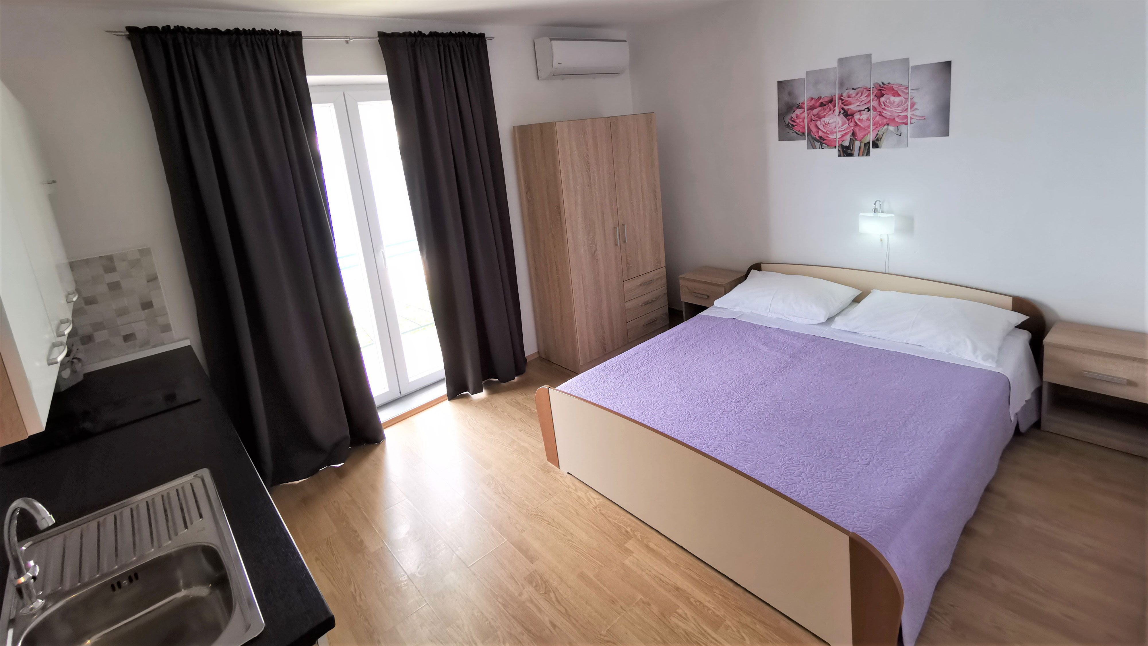 Studio apartman je dvokrevetni apartman. Nalazi se na prvom katu i ima balkon s pogledom na more. Opremljen je kupaonicom, mini kuhinjom, Wi-Fi,TV-om i klimom.